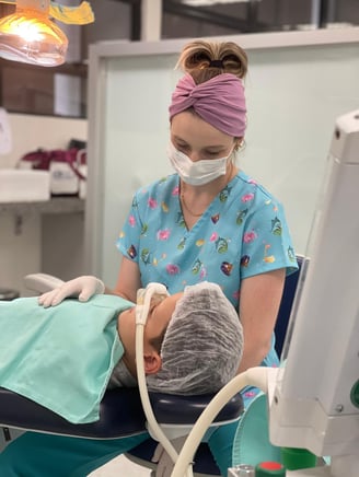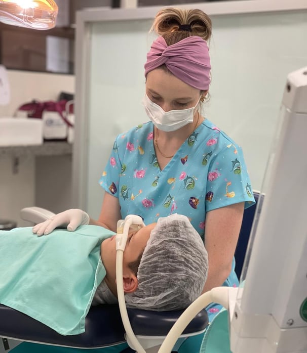 Utilização de óxido nitroso para proporcionar conforto e tranquilidade durante os procedimentos odontológicos.
